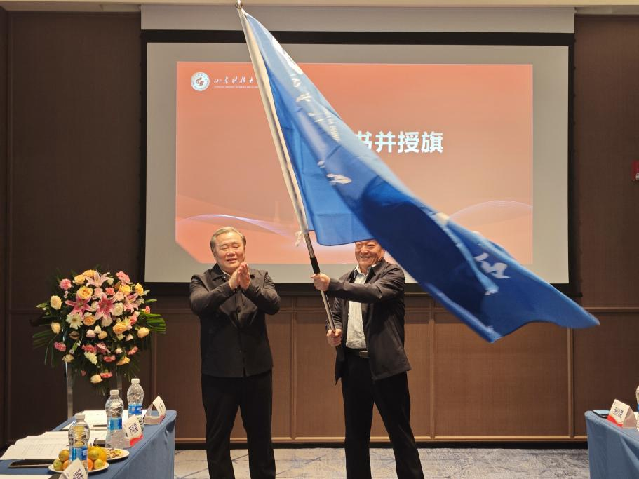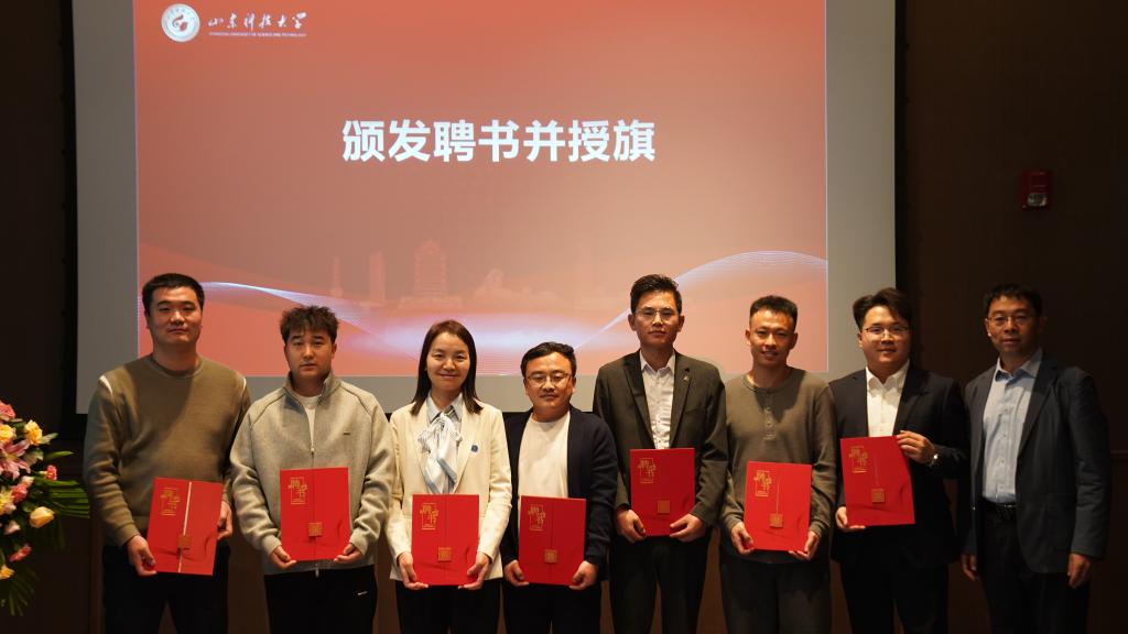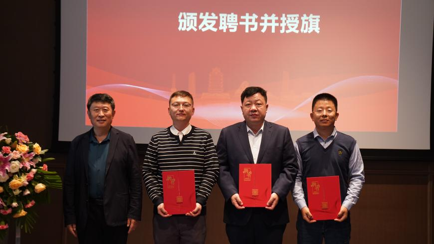 姚庆国为甘肃校友会会长、执行会长颁发聘书并授旗。山东科技大学校友总会副会长兼秘书长、校友工作办公室主任王晓东为甘肃校友会副会长代表颁发聘书。山东科技大学材料学院党委书记申兆亮为甘肃校友会秘书长、副秘书长代表颁发聘书。山东科技大学艺术学院党委书记王斌为甘肃校友会理事代表颁发聘书。