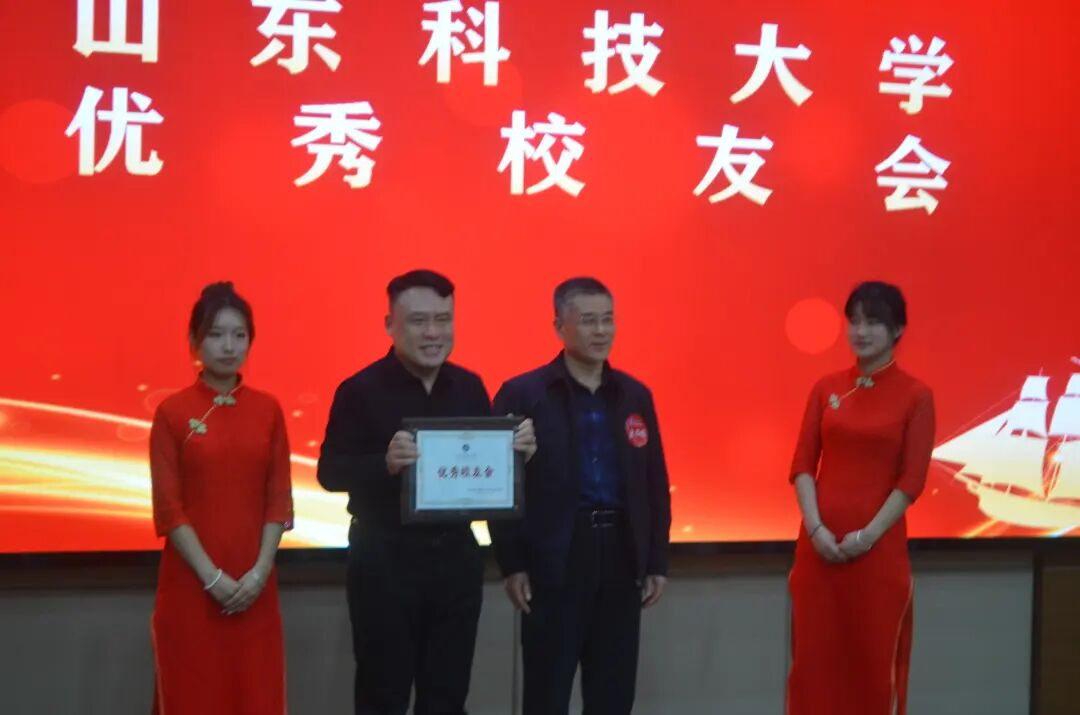 在表彰环节,山东科技大学土建学院泰安校友会秘书长、泰安市现代建筑设计有限公司院长类维廷主持相关流程。宋西路书记为优秀校友会——土建学院泰安校友会颁奖,刘辉代表土建学院泰安校友会上台领奖。随后,类维廷宣布土建学院泰安校友理事会决议:聘任土建学院泰安校友会副秘书长、山东弘建教育科技有限公司董事长刘辉为山东科技大学土建学院泰安校友会执行会长。