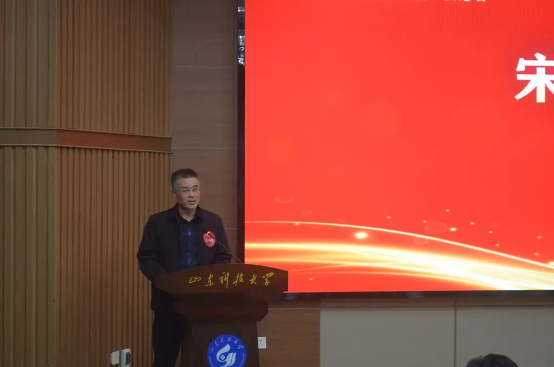 随后,山东科技大学土木工程与建筑学院党委书记宋西路致辞。他对莅临现场的各位校友、来宾表示热烈欢迎与衷心感谢,回顾了学院深厚的发展积淀与“土实木华、明德笃行”的精神底色。宋西路详细汇报了2025年学院在人才培养、科研创新、本科教学与专业建设等方面取得的亮眼成果,以及学院与校友在产学研合作、学生就业等领域的良性互动。面对土木建筑行业数字化、智能化的变革趋势,他期盼校友们持续关心支持学院发展,深化产学研用融合,传承弘扬土建精神,祝愿校友会蓬勃发展、各位校友事业顺遂、母院薪火永续。