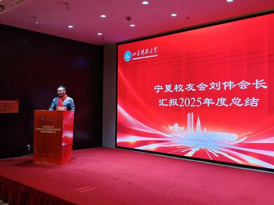 2026年1月10日下午,山东科技大学宁夏校友会年会暨西北研究院高质量发展研讨会在银川隆重举行。本次会议以“凝心聚力谋发展,协同共进谱新篇”为主题,来自宁夏能源行业嘉宾代表、兄弟校友会代表、校友理事单位及在宁校友代表百余人齐聚一堂,共叙校友情谊,共话协同发展,共谋合作新篇。