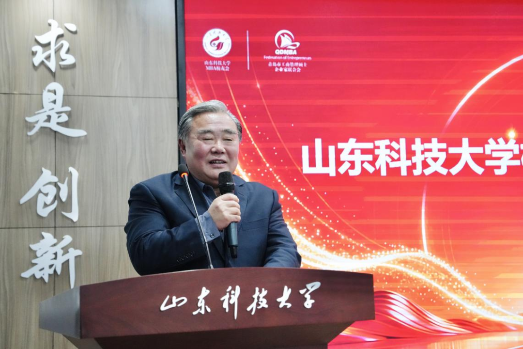 姚庆国发表讲话,他介绍了山东科技大学校友总会在深耕联络赋能、搭建协同平台的发展成效,强调校友会是凝聚校友力量、链接合作资源的重要纽带。他希望大家能借助此次论坛充分交流,立足MBA人才培养与技术转移转化,深耕产业需求,为社会经济高质量发展贡献力量。