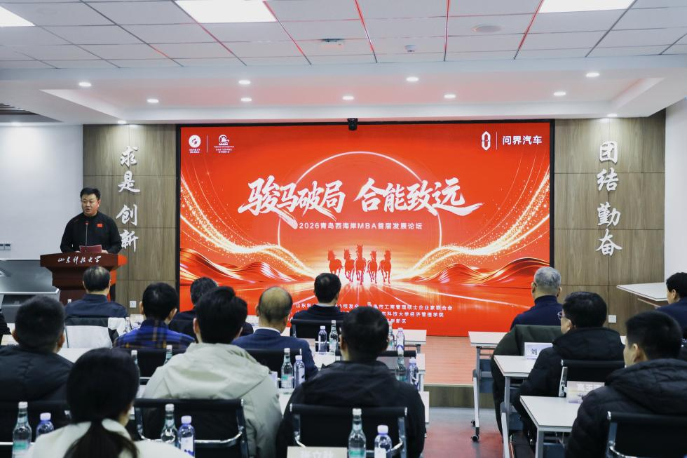 2026年1月31日下午,青岛西海岸MBA首届发展论坛在山东科技大学校友之家隆重举行,本次论坛以“骏马破局,合能致远”为主题,由山东科技大学MBA校友会和青岛市工商管理硕士企业家联合会共同举办。山东科技大学校友总会会长姚庆国,青岛农业大学原校长、山东科技大学MBA导师刘新民,青岛市工商管理硕士企业家联合会会长王宇,青岛经济技术开发区投资促进部部长毛功进,青岛自贸片区管委会财政金融部部长李忠刚以及学校相关职能部门和学院领导老师代表,山东科技大学、中国石油大学、中国海洋大学、哈尔滨工程大学及其他兄弟院校MBA代表等100余人共聚一堂,畅叙情谊、共谋发展。