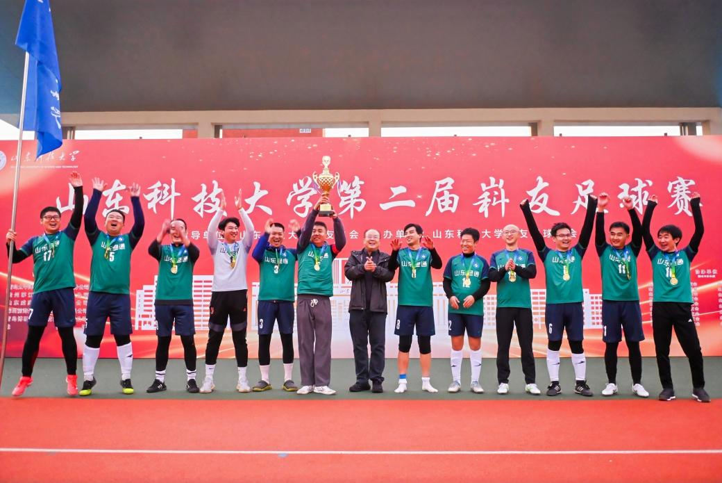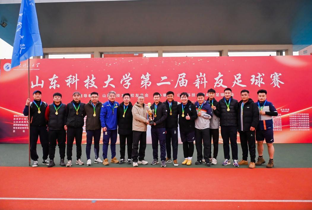 山东科技大学嵙友足球协会顾问张迎军为亚军队伍颁奖