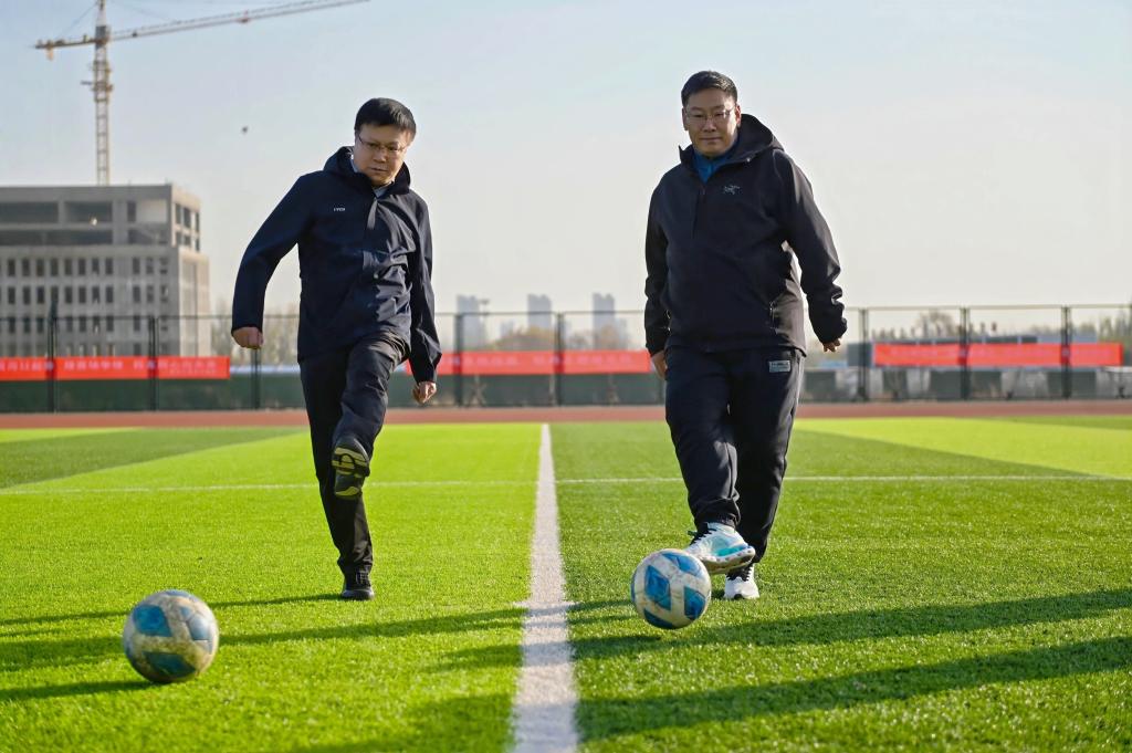 王君松与诸葛福民共同为比赛开球,诸葛福民向重返母校的各位校友表示诚挚欢迎,对第二届校友足球赛的顺利开幕表示热烈祝贺。他表示校友足球赛不仅是一场体育竞技,更是连接母校与校友、凝聚校友情谊的重要桥梁,学校一直以来高度重视校友工作,关心校友发展,今后将持续组织校友活动,加强校友与校友,校友与母校的链接,助力校友与母校同成长、共进步。